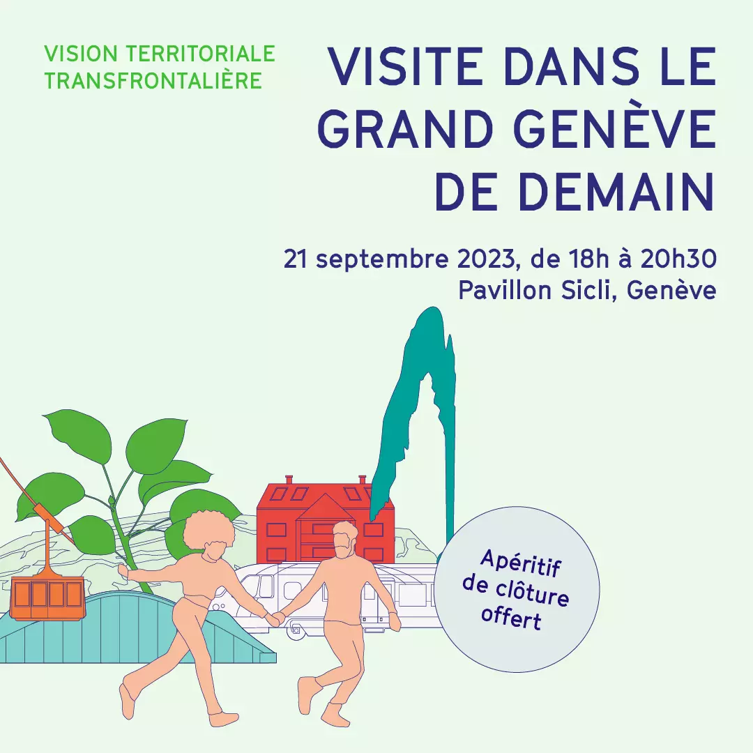 Dans le cadre du projet de la Vision territoriale transfrontalière, le département du territoire organise le jeudi 21 septembre 2023 un événement au Pavillon Sicli de 18h00 à 20h30 proposant une « Visite dans le Grand Genève de demain » sous la forme d’une table-ronde et d’une immersion autour de la maquette interactive du Grand Genève, faisant état de l’avancée du projet.